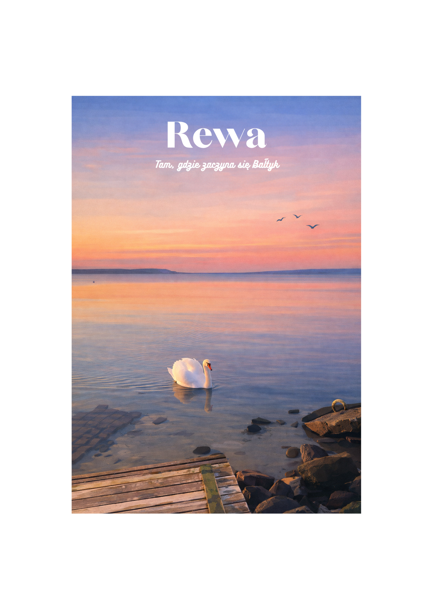 Pocztówka Rewa – Tam, gdzie zaczyna się Bałtyk to nastrojowa i symboliczna forma przekazu, która podkreśla wyjątkowe położenie miejscowości i jej bliskość morza. Poetyckie hasło tworzy spokojną, ponadczasową pamiątkę.