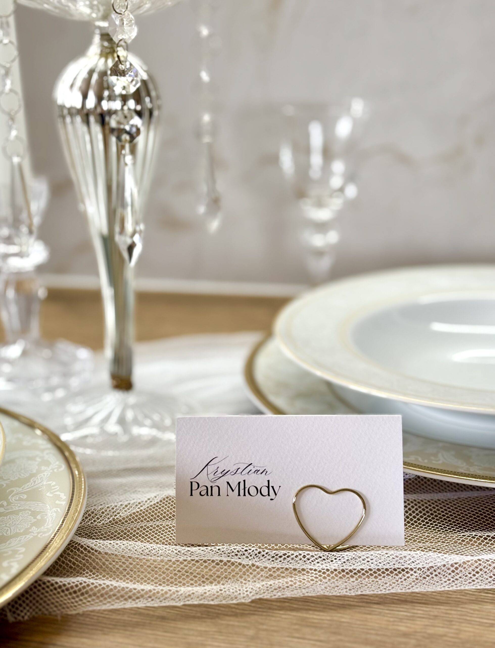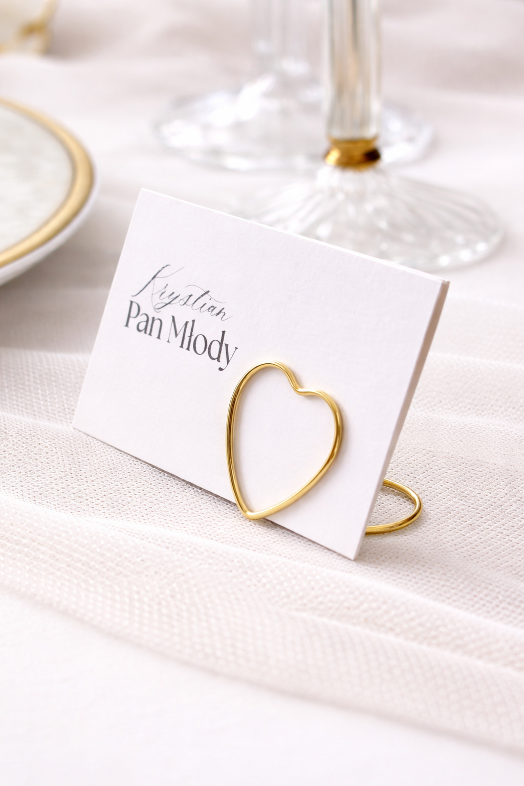 Złote stojaczki w kształcie serduszek na winietki to subtelny, a jednocześnie niezwykle efektowny element dekoracyjny, który potrafi całkowicie odmienić charakter stołu. Ich delikatna, romantyczna forma w połączeniu z eleganckim złotym wykończeniem sprawia, że idealnie wpisują się w aranżacje weselne w stylu glamour, gdzie liczy się blask, harmonia i dopracowany detal.