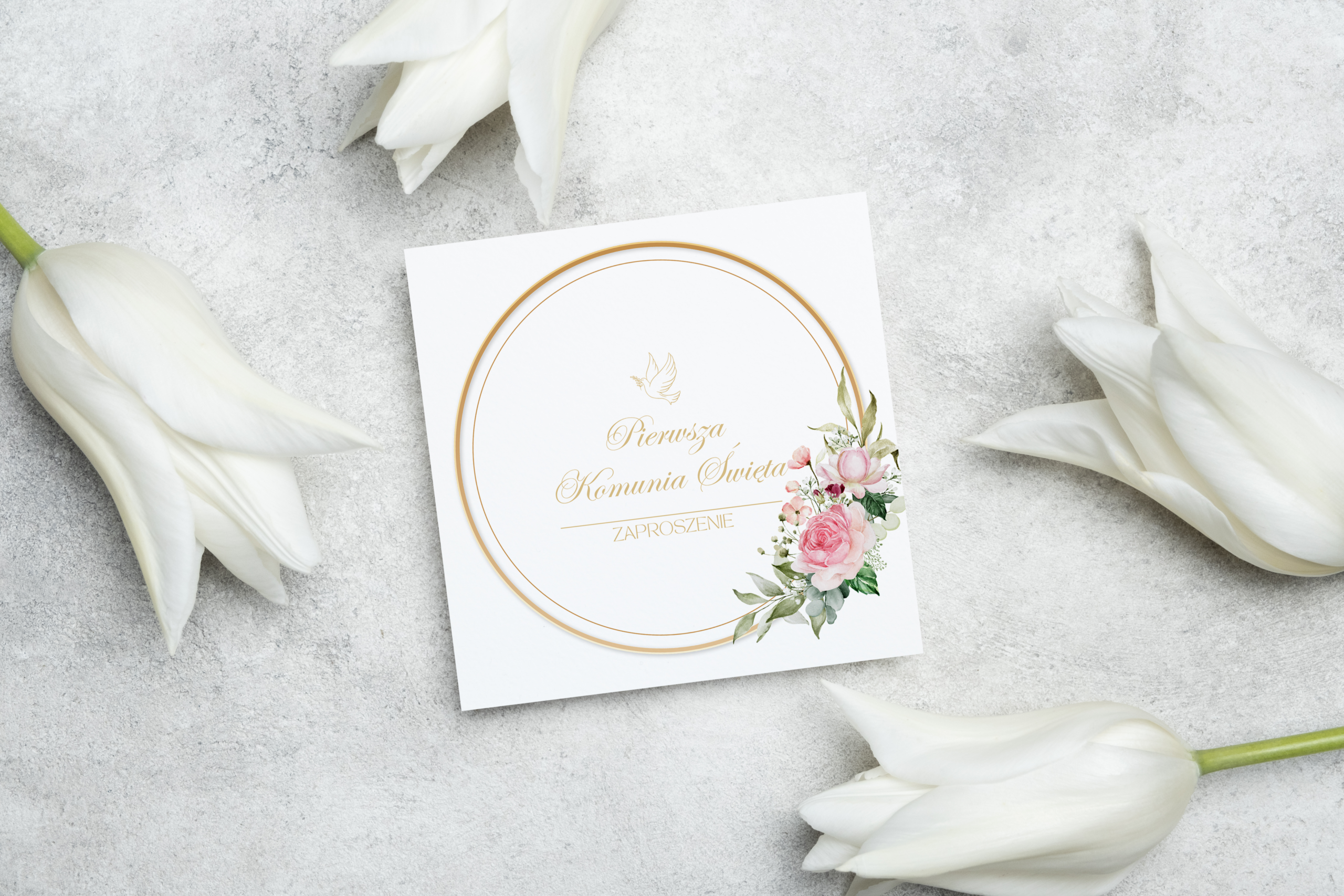 Stylowe zaproszenia komunijne do samodzielnego wypisania – idealne rozwiązanie dla osób, które cenią czas, wygodę i piękny design. Gotowe do wysyłki w ciągu 24 godzin!