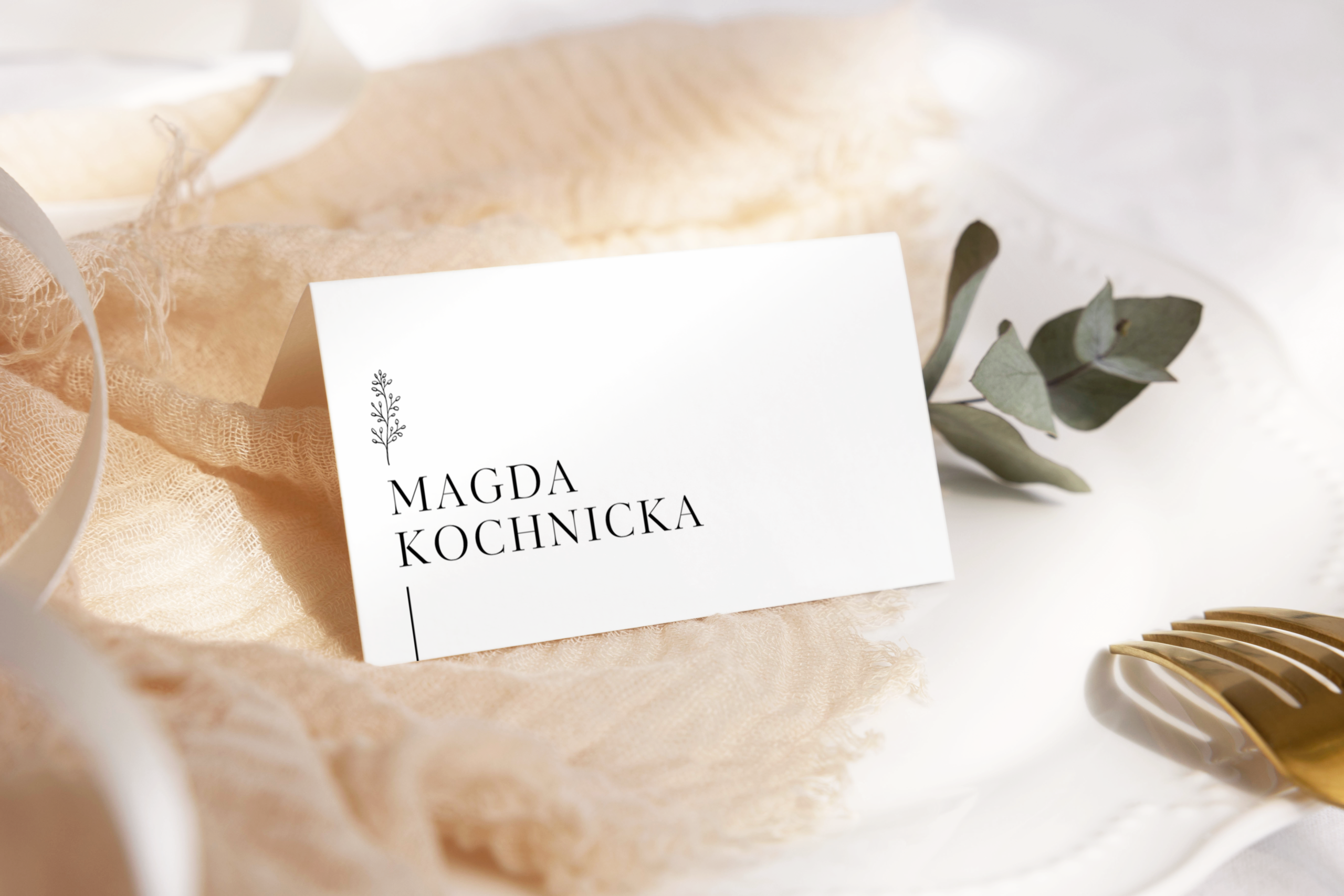 Każda winietka zawiera personalizowane imię i nazwisko gościa, a motyw kwiatowy dopasowany jest do pozostałych elementów papeterii ślubnej z tej samej kolekcji – zaproszeń, menu czy numerów stołów.
